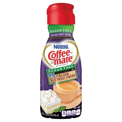 Splenda sugar free, low calorie sweet cream coffee creamer. Sweet creme flavored coffee creamer delivers. Nutrition information for coffee mate creamer. Find out how many calories are in coffee mate italian sweet cream coffee creamer sugar free, good or bad points and other nutrition facts about it. Love creamer but i no longer use it because of the calories.
