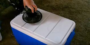 It is basically a cool box with ice and fans that pull the warm external air in over the ice, it then circulates around the box before shooting cold air back out through the three outlets at the rear. The 'cool' comes from an ice/water reservoir stored in a thermos. Share your thoughts with us in the comments section below! Air conditioning is typically one of the most difficult things to run from a solar power setup. That's why having a portable air conditioner powered by the sun is essential for a relaxing day in nature.